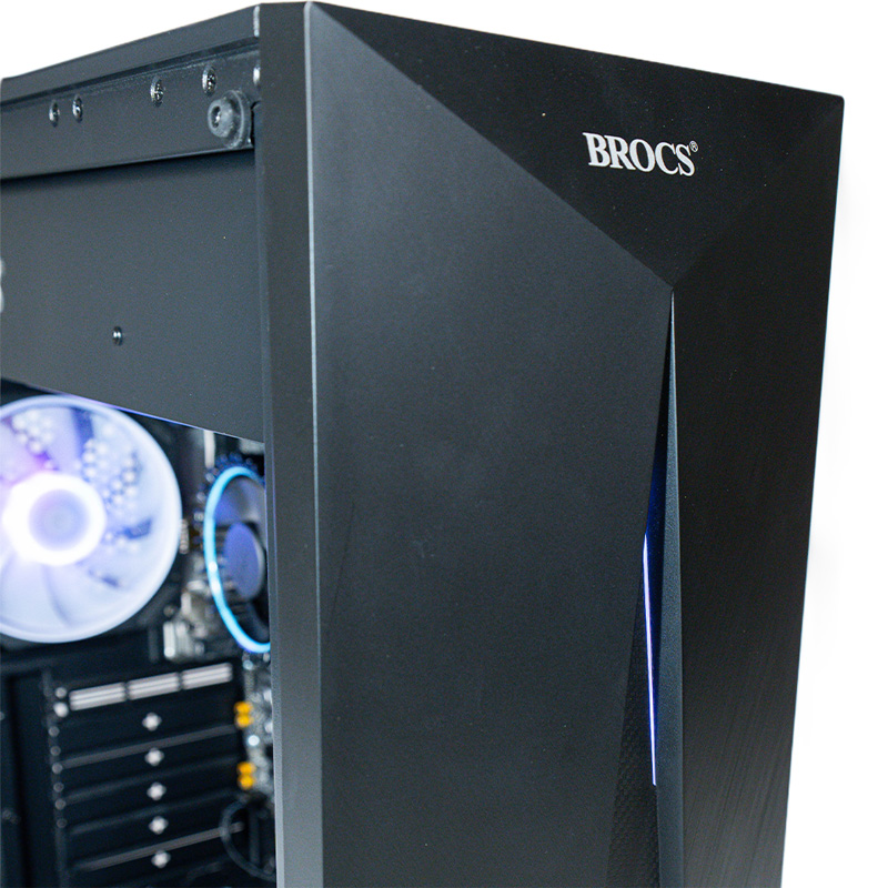 Su acabado en color negro, junto con un chasis robusto y un panel frontal de 0.5 mm con detalles en plástico y tira ARGB, le da un aspecto moderno que complementa cualquier configuración. Además, el panel lateral de cristal templado permite visualizar los componentes internos, aportando un estilo más profesional al equipo.