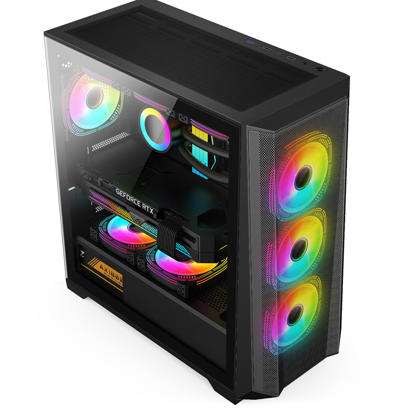 | Incluye 4 ventiladores RGB negros (3 en el panel frontal y 1 en el panel trasero). | |