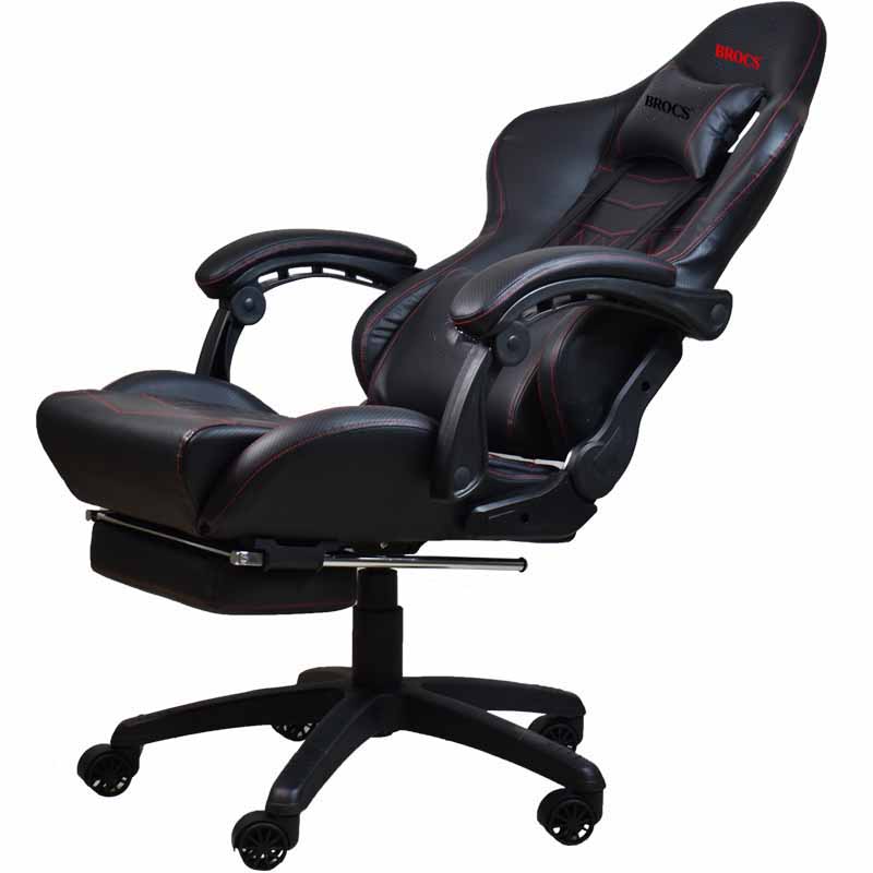 BROCS, Silla Gamer BR6689SN, Negro, Respaldo reclinable con apoya pies, Garantía: 6 Meses – BR6689SN